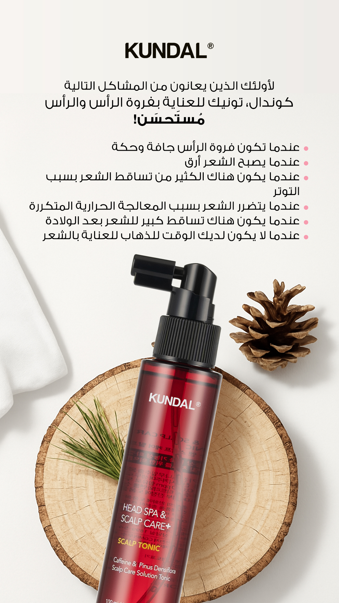 يحتوي تونيك فروة الرأس على مادة الكافيين التي تساعد على منع تساقط الشعر وتحفيز بصيلات الشعر، مما يؤدي إلى زيادة نمو الشعر. يعمل منشط فروة الرأس كوندال على تحسين الدورة الدموية في فروة الرأس والذي بدوره يوصل الأكسجين والمواد المغذية الأخرى إلى فروة الرأس ويعزز بصيلات الشعر الصحية. يحفز الكافيين نمو الشعر ويساعد الشعر على البقاء في مرحلة النمو لفترة أطول. غني بمستخلصات البذور والفاكهة والجذور التي تمتصها فروة رأسك بسرعة، مما يقوي جذور الشعر ويمنحك شعراً أكثر كثافة وكثافة. صُنع منشط فروة الرأس والعناية بفروة الرأس + منشط فروة الرأس من كوندال بمكونات طبيعية غنية بالعناصر الغذائية التي سيحبها شعرك